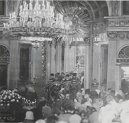 Ектения Духовенство и хор Спасо-Преображенского собора в Санкт-Петербурге. Всенощное бдение на праздник Вход Господень в Иерусалим. 1994 г.